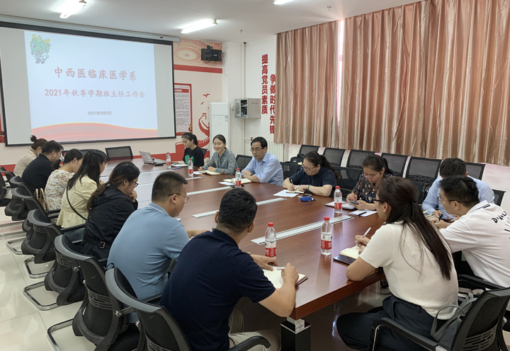 9月9日下午,中西医临床医学系在南校区5号教学楼5205会议室召开2021年秋季学期班主任工作会议。中西医临床医学系党总支书记袁普卫、副书记董芳,全体辅导员及本科、研究生班主任参加会议。会议由董芳主持。