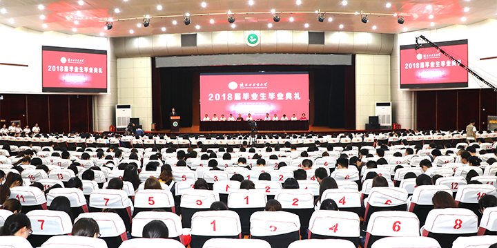在毕业典礼上,校长刘力教授代表学校党委、行政和全校教职员工作了饱含深情的致辞,向3376名2018届毕业生圆满完成学业表示热烈祝贺,向含辛茹苦抚育他们成长的家长们、向为他们成长成才付出艰辛努力的广大教职员工们表示衷心感谢。他说,“青年兴则国家兴,青年强则国家强。你们正处于实现中华民族伟大复兴的关键阶段,希望寄托在你们身上,时代的责任需要你们去担当。”在毕业生们即将扬帆远航之际,刘校长对他们殷殷叮嘱,希望他们不忘初心,志存高远,用崇高的理想凝聚精神力量;勤学善思,追求卓越,用扎实的学识夯实人生厚度;求真务实,敬业奉献,用务实的精神拓展人生宽度;立德修身,涵养情操,用崇高的人格托举人生高度。