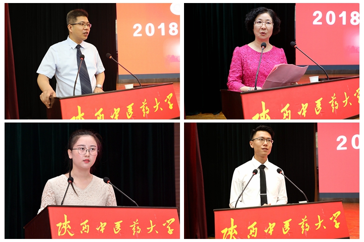 教师代表雷霆、校友代表韩学杰、毕业生代表司芸芳、留学生代表容孜毅分别作了发言。雷霆老师的发言表达了全体教师对毕业生的殷切希望。韩学杰与毕业生们从求学、择业、工作等方面分享了自己的感悟,希望学弟学妹们无论顺境逆境,都能守心克己、勇于担当、敢于创新、勇担时代重任、扛起中医药发展的大旗。毕业生代表的发言以回忆、感恩和祝福为关键词,表达了对母校的深深眷恋和对老师同学们的感谢与祝福。留学生代表分享了自己在校几年的成长与感悟。