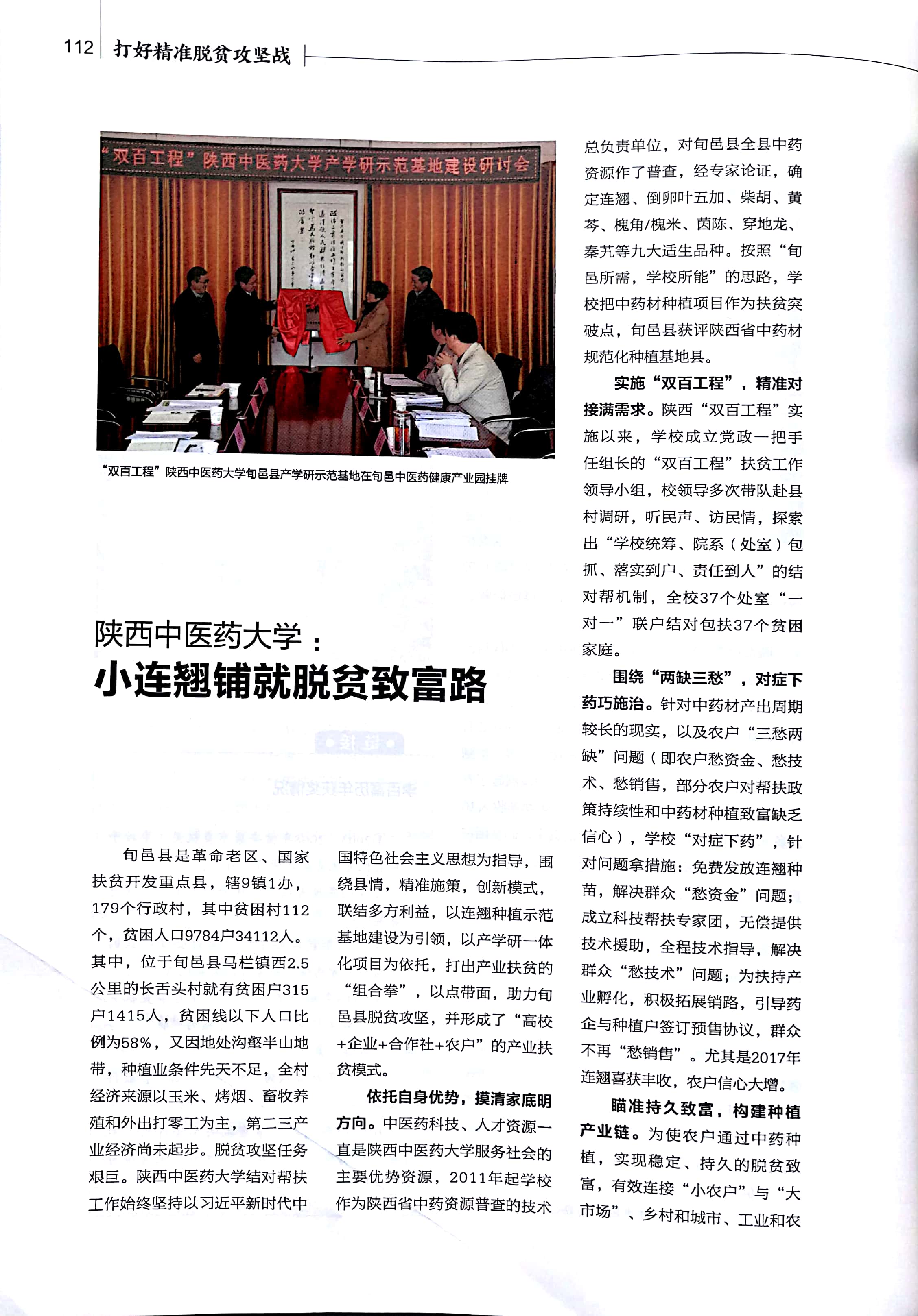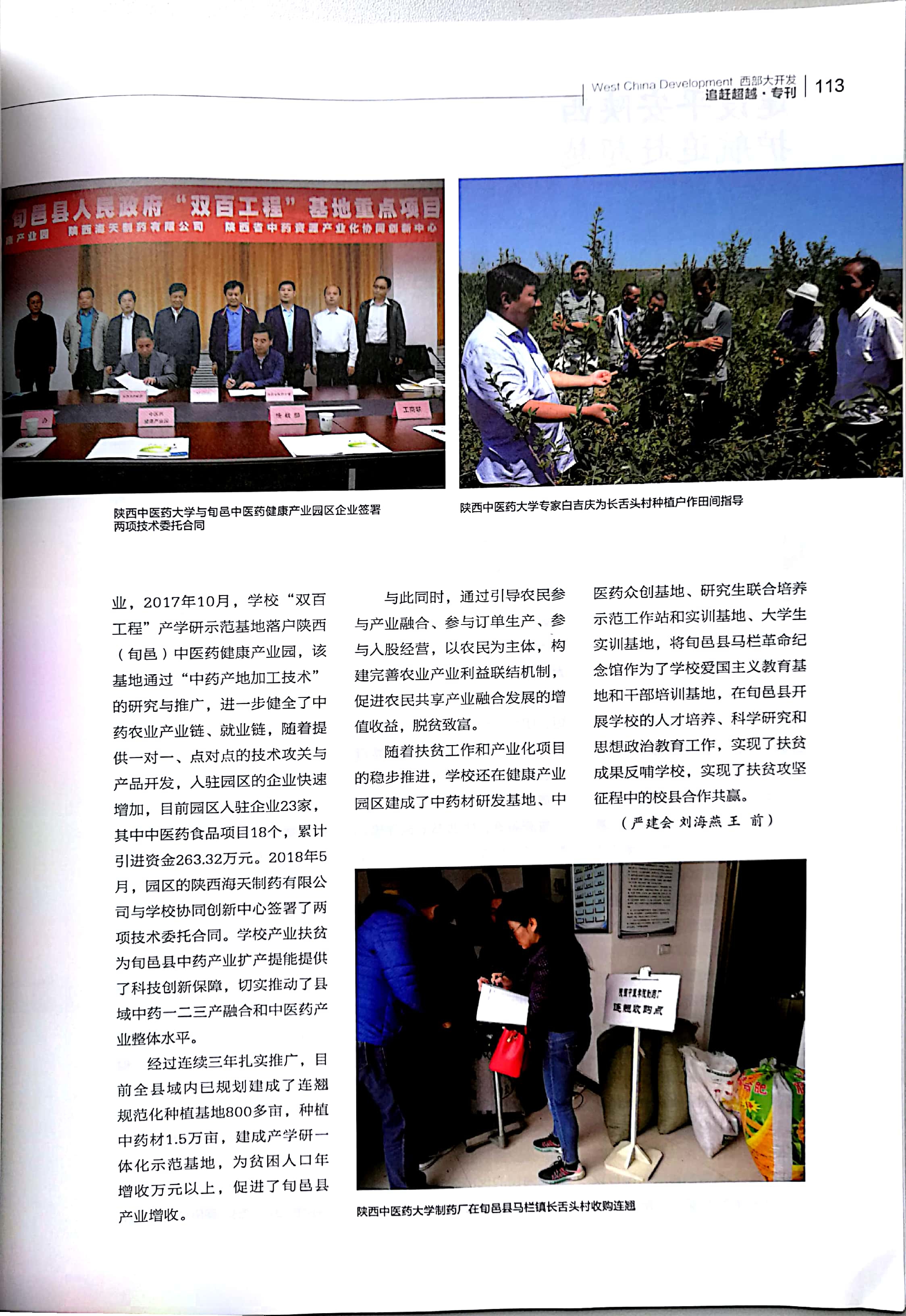 近日,《西部大开发》以《陕西中医药大学:小连翘铺就脱贫致富路》为题报道我校助力旬邑县脱贫攻坚工作成绩。报道指出,陕西中医药大学结对帮扶工作坚持以习近平新时代中国特色社会主义思想为指导,围绕县情,精准施策,创新模式,联结多方利益,以连翘种植示范基地建设为引领,以产学研一体化为依托,打出产业扶贫的“组合拳”,以点带面,助力旬邑县脱贫攻坚,形成了“高校+企业+农户”的产业扶贫模式。