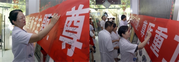 在随后举行的“尊医重卫,共享健康”医师签名活动中,各位医师及市民共同拿起签字笔,在横幅写下对医师们的美好祝福,向所有甘于奉献、大爱无疆的医师致敬。在铜川药王山,医院组织部分医务人员举行了庄严的宣誓仪式,大家表示将牢记誓言,不忘初心,以实际行动践行“大医精诚”精神,更好地服务百姓健康。