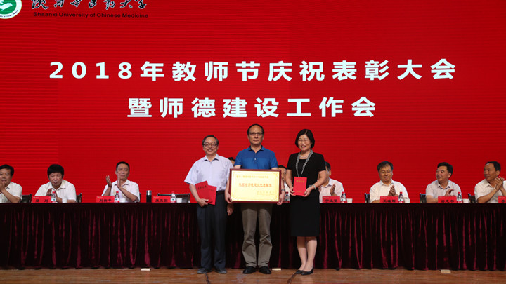 2018年陕西省师德先进集体获得单位基础医学院和师德先进个人获得者张栓教授,第十一届陕西省普通高校教学名师奖获得者张栓教授、崔晓萍教授领奖