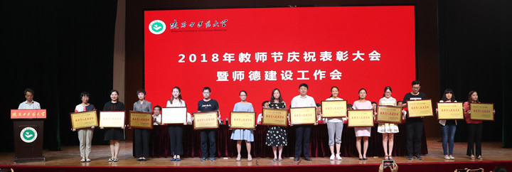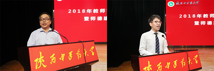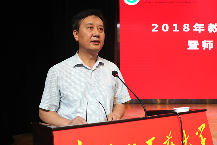 王瑞辉副校长宣读了系列表彰文件,会议表彰了2018年陕西省师德先进集体获得单位基础医学院和师德先进个人获得者张栓教授,第十一届陕西省普通高校教学名师奖获得者张栓教授、崔晓萍教授,以及学校2016~2017、2017~2018年度“三育人”先进集体和先进个人。为加强师德建设,会议印发了《陕西中医药大学关于建立健全师德建设长效机制的实施办法》(陕中大党[2018]56号)。