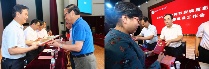 党委书记刘力、校长孙振霖为获奖教师代表颁奖
