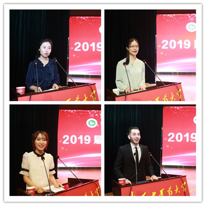 教师代表段丽芳、校友代表韩静、毕业生代表郭诗琪、留学生代表卓尼分别发言