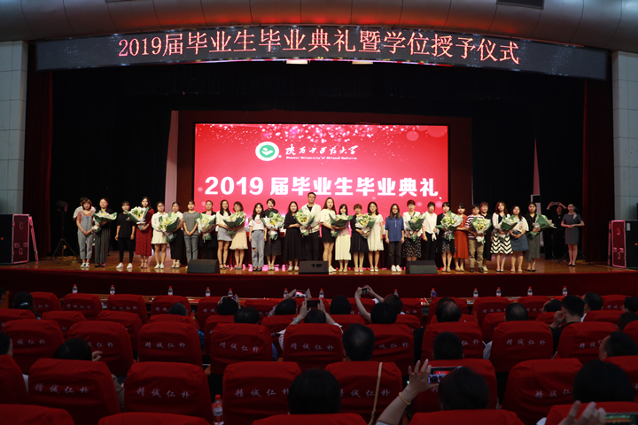 校长孙振霖代表学校党委、行政和全校教职员工作了饱含深情的致辞,祝贺2735名学生顺利毕业,希望他们热爱国家,志存高远,心系苍生;热爱工作,勇于开拓,不断创新;热爱生活,砥砺心智,追求卓越;关爱母校,常怀感恩,心系母校。教师段丽芳结合自己作为一名青年教师的成长经历,寄语毕业生在将来的工作岗位上一定要明确奋斗目标、付诸艰辛努力、不忘感恩回馈,用自己的一言一行打造属于自己的人格魅力,收获更有价值的人生!知名校友、陕西师范大学韩静教授回忆了自己在母校度过的大学生涯,结合自己工作之后的历程,畅谈了一个中医人如何走上科研道路,如何通过努力奠定自己在科研界的基础。她鼓励毕业生一定要有情怀、会学习、懂生活,走出校园更要不忘初心、铸就人生的辉煌。毕业生代表、针灸推拿学院郭诗琪同学表达了自己对母校深深的依恋,分享了自己在校几年的成长与感悟。留学生代表、国际教育学院的哈萨克斯坦留学生卓尼向大家讲述了自己游历多国之后,在中国被中医学这一凝聚深邃的哲学智慧和东方特色医学传统医疗方法震撼,被陕西中医药大学的校园文化吸引,最终决定在陕西中医药大学学习中医的故事。他表示自己要把学会的中医知识带回哈萨克斯坦,造福更多的患者,希望母校的师生永远记住他。