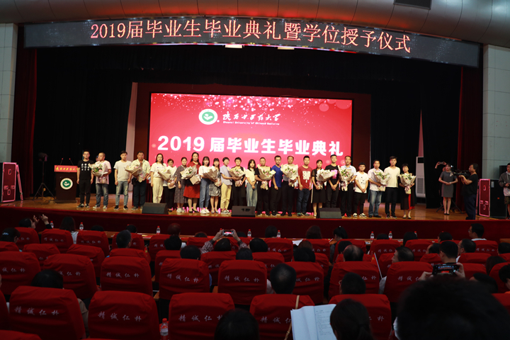 芳草萋萋如茵、丝雨如烟如雾。6月28日上午,我校2019届毕业生毕业典礼暨学位授予仪式在会展中心隆重举行。全体校领导、全体处级干部,辅导员、教师代表、校友代表、毕业生代表、家长代表共1100余人参加毕业典礼。毕业典礼由校党委副书记于远望教授主持,学位授予仪式由校学位委员会副主席、副校长王瑞辉教授主持。