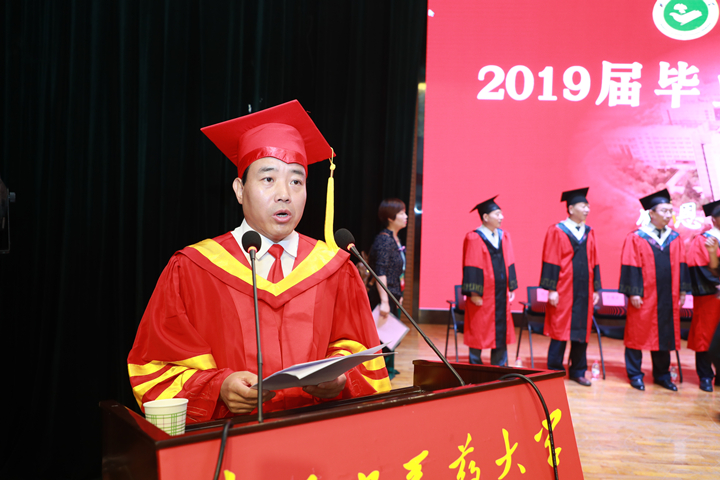 学校学位评定委员会副主席、副校长蒲济生宣读了《关于授予王敏等403名2019届研究生硕士学位的决定》《关于授予王倩等2980名2019届本科毕业生学士学位的决定》